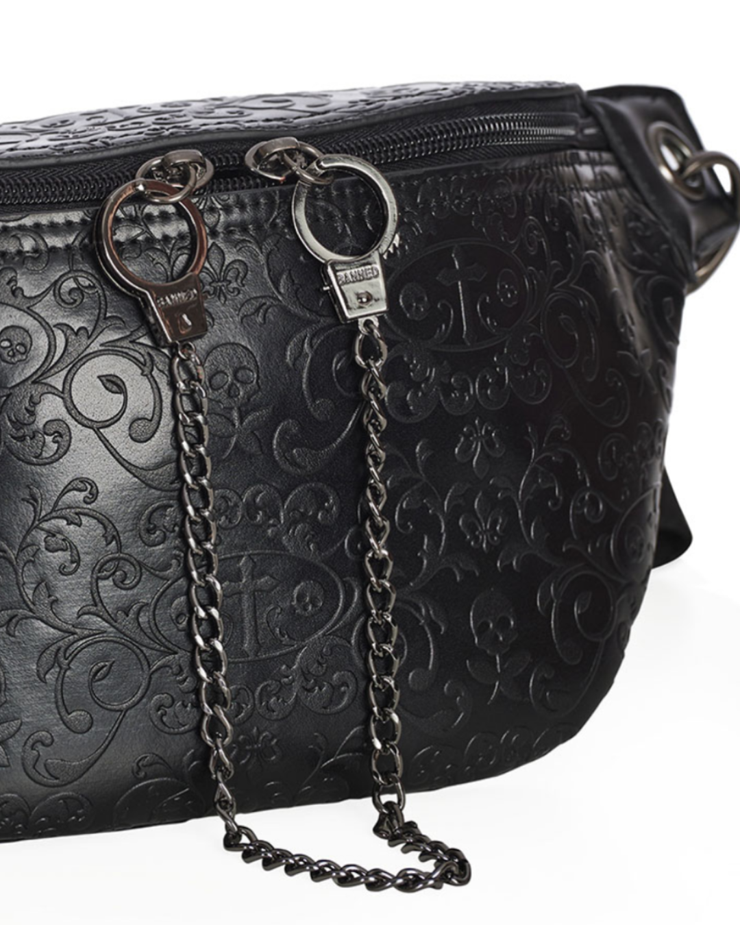 Unleash your daring side with our Embossed Gothic Sling Bag. The intricate gothic design adds a touch of edge to any outfit. With its comfortable sling strap, this bag is perfect for everyday.